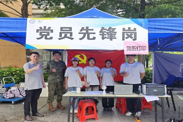 学院特别设立“简历打印”专区,同时设置了党员先锋服务岗和征兵咨询点。
