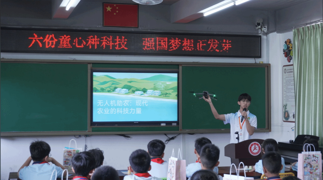 活动分为“安全护航”“科学探秘”“科技赋能”三个特色环节展开。学生党员借助模拟实操和趣味互动问答,深入浅出地传授了防诈骗与防溺水的实用知识,为孩子们筑起了坚实的暑期安全屏障。随后,他们引领孩子们亲手操作趣味化学实验,并体验无人机翱翔天际的奇妙,激发了孩子们对科学的浓厚兴趣。
