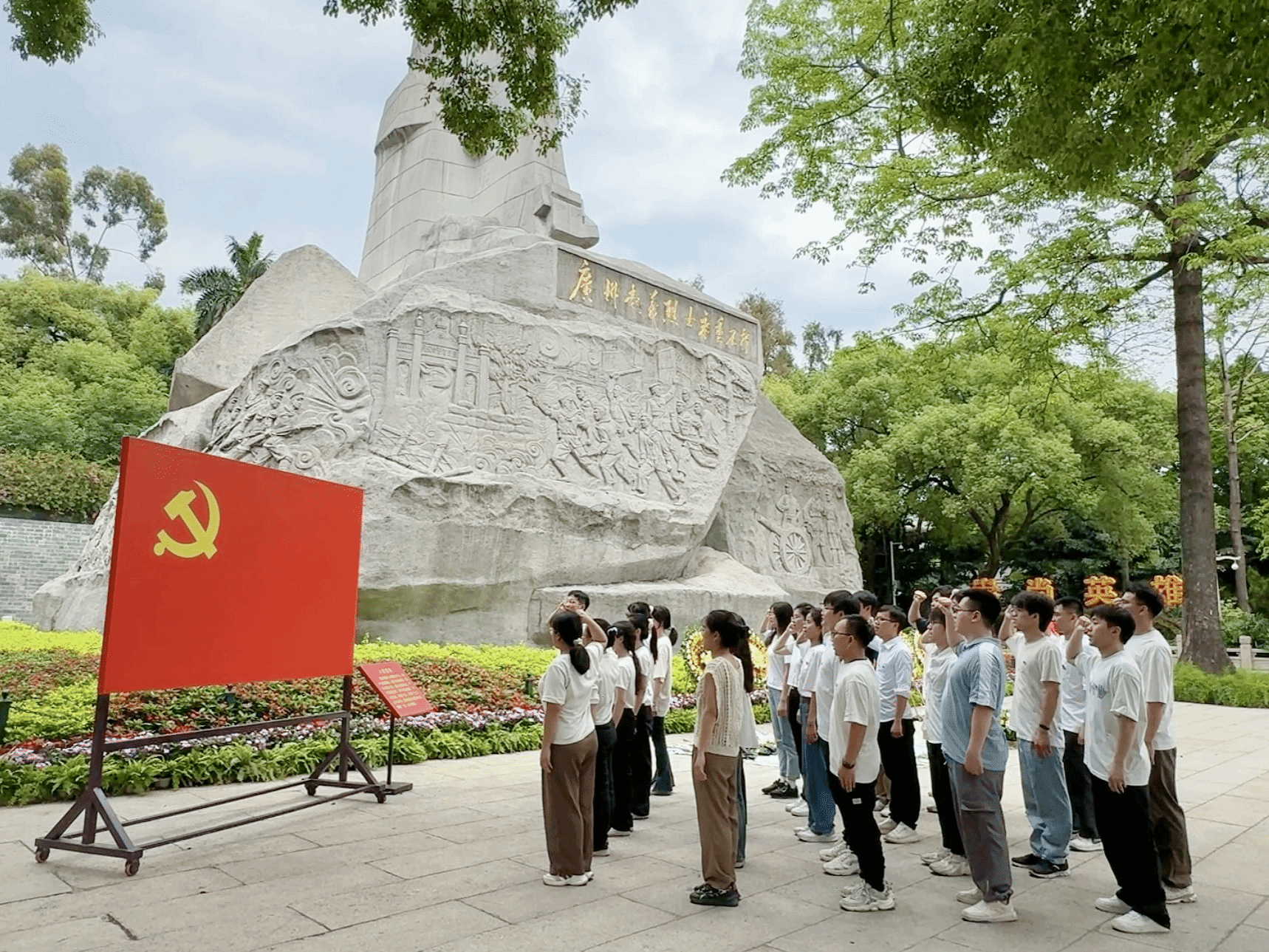 怀着对革命烈士无限崇敬的心情,支部全体同志来到广州起义烈士陵园。在支部书记许秋林同志带领下,全体同志在广州起义纪念碑前肃然静立,为革命烈士默哀,共同瞻仰了纪念碑,并依次向纪念碑敬献鲜花,表达对革命先烈的深切哀思与崇高敬意。随后,全体同志面向党旗重温了入党誓词。