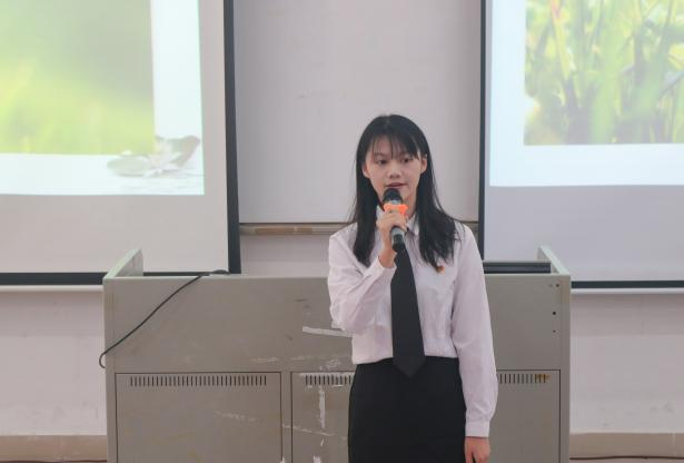 高分子材料与工程232班赖思廷以“学农爱农,践农使命”为主题,通过举例经典人物指出青年们要肩负起知农爱农、惜农助农的使命担当,为农业发展助力。高分子材料与工程221班苏俊豪以“高分子材料:创新农业的未来之路”为主题讲述廖仲恺先生与农业的故事,凸显化工行业在农村能源开发中所起的重要作用。应用化学223班林琪以“化工助力,乡村振兴”为主题讲述袁隆平一生研究水稻的故事,引出化工学子当前所面临的机遇与挑战。材料化学213班麦芷冰以“一颗影响世界的种子”为主题讲述杂交水稻的意义,指出没有化工就没有现代农业,寄语化工学子们应当有责任心、有担当。应用化学222班赵蕾以“学三农思想,悟化工兴农”为主题讲述廖仲恺先生和何香凝女士与农业之间的不解之缘,呼吁同学们注重实践,学习专业知识,为农业贡献,让山更青、水更绿、天更蓝。