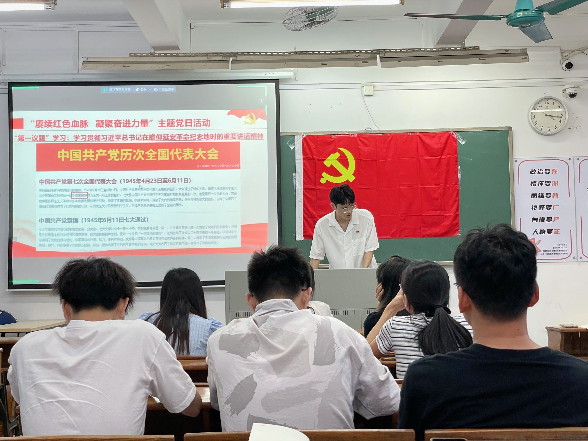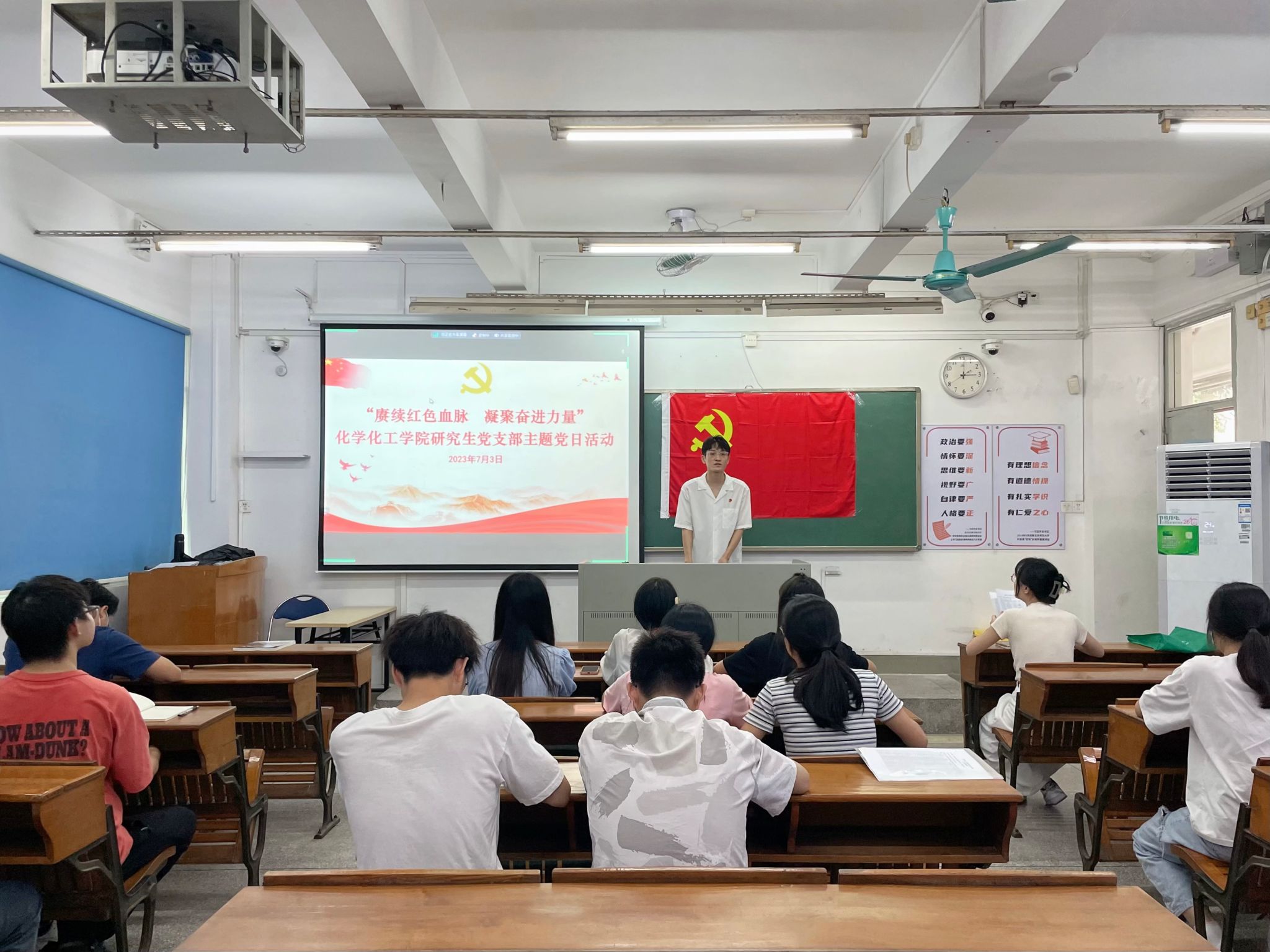 7月3日下午,化学化工学院研究生党支部于海珠校区教学楼203课室开展“赓续红色血脉,凝聚奋进力量”主题党日活动。研究生党支部全体党员和入党积极分子参加活动,支部书记许秋林主持。