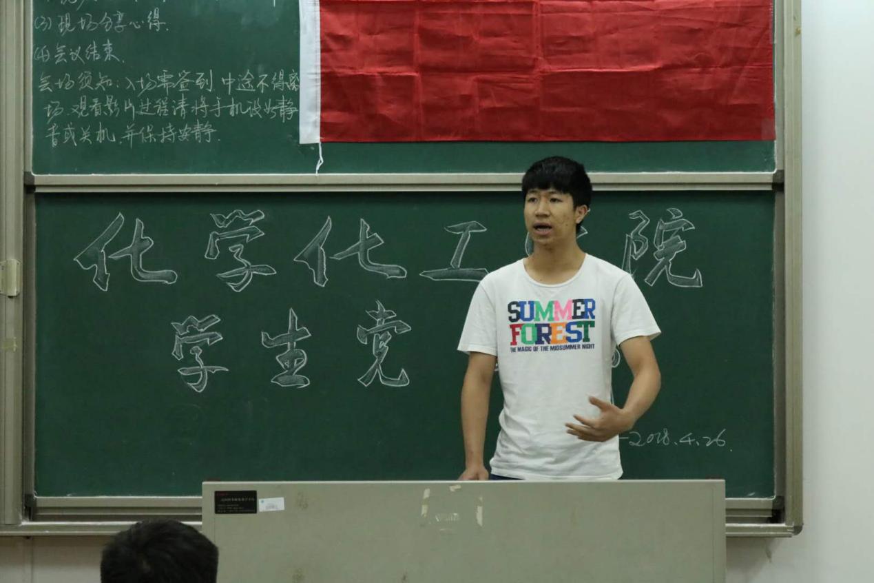 会议最后,高分子与材化学生党支部宣传委员赖锐豪同志表达自身观影的感想,并呼吁同志们要努力提升自身的思想觉悟,积极地投入到社会主义建设中去。