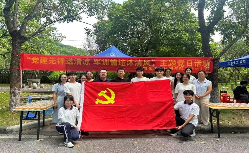 09月17日,学生党支部于军训大本营处组织开展了“党建先锋送清凉,军训愉途沐清风”党日活动。党员们提前筹备,将一碗碗精心熬制、冰凉甘甜的绿豆汤送到正在烈日下刻苦训练的新生和教官手中。这份及时的清凉不仅消解了暑气,更传递了党组织诚挚的关怀,鼓舞了军训队伍的士气。