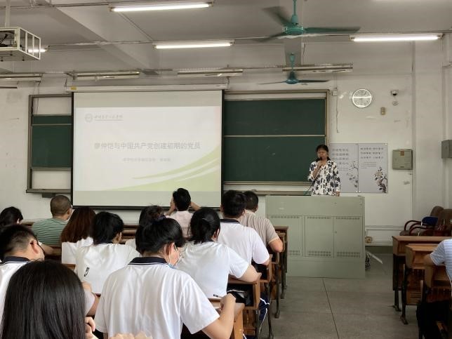 在建党100周年之际,化学化工学院为进一步深化全体师生党员党史学习教育,于2021年5月13日,在海珠校区教学楼B401课室举办了以“廖仲恺与中国共产党初期的党员”为主题的五月党史学习主题党课。本次主题党课由廖仲恺何香凝纪念馆馆长蔡瑞燕主讲,化学化工学院党总支书记邱树华主持。