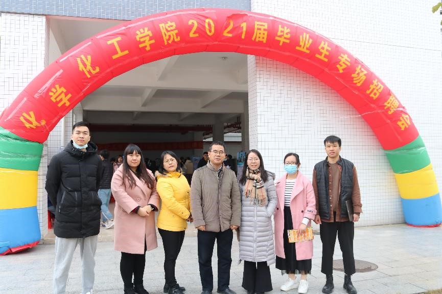 1月11日中午,化学化工学院于综合教学楼架空层举行教育类企业招聘会。为了更好地了解企业情况与2021届毕业生招聘情况,化学化工学院院长舒绪刚、党总支副书记严丽纯、辅导员王正梅、刘亚宁、徐冠东、李珊珊、梁开华莅临本次受聘会作详细了解。