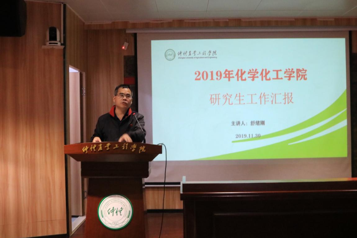 11月30日,化学化工学院研究生工作会议在海珠校区英东楼111隆重举行。学校副校长田允波,研究生处党总支书记周遗品,学院院长舒绪刚,副院长冯光炷、陈循军,学院党总支书记邱树华、副书记严丽纯,学院全体研究生及其导师出席了会议。会议由党总支书记邱树华主持。
