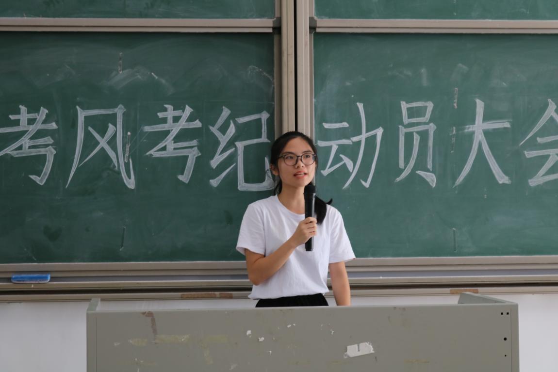 本报讯(化学化工学院新闻中心 苏晓霞 周永奇)6月19日上午,为加强考风考纪教育,营造良好的考试氛围,以更好的状态度迎接期末考试,我院在D2小礼堂召开2018级期末考试暨考风考纪动员大会。参加本次会议的嘉宾有我院辅导员潘耀宗老师、我院2017级优秀学生代表黄玉婵和许翼鑫,以及2018级全体学生。