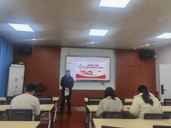 2024年2月29日,化学化工学院学工队伍于何鸿燊楼A座(化工大楼)406召开2024年春季学期第一次学工例会,会议由化学化工学院党委副书记刘勇主持。