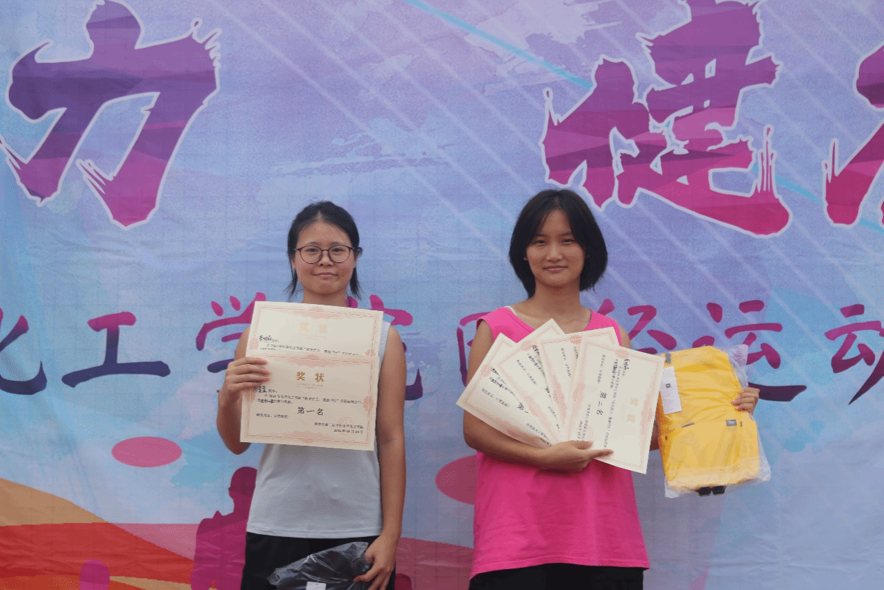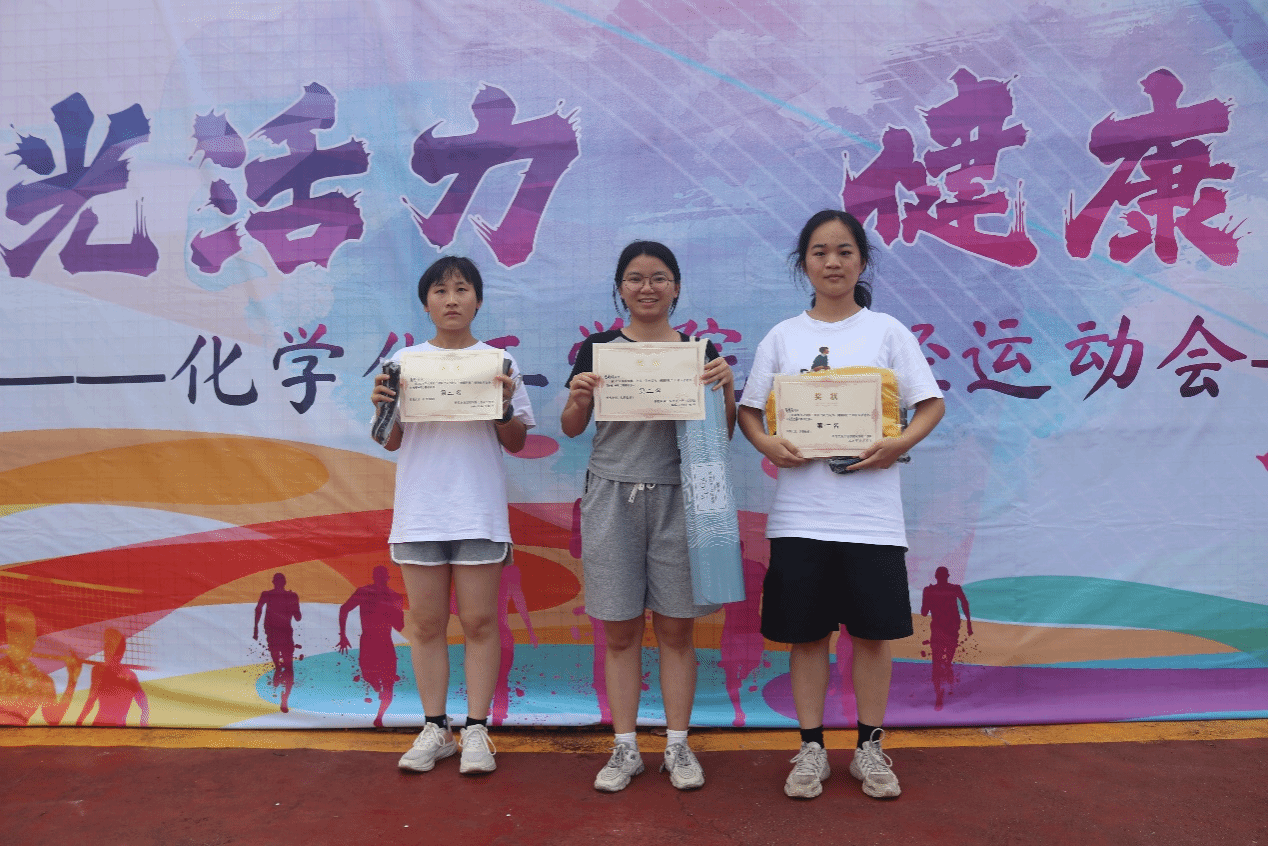 院运会项目中,男子100米:黄鑫、黄政涛、陈思全位列前三名;男子200米:黄鑫、黄俞帆、黄梓欢位列前三名;男子400米:黄鑫、陈允充、黄政涛位列前三名;男子1500米:吴亚龙、黄梓钦、李泰宏位列前三名;男子4×100接力:应化242班、材化241班,化工232班分别为前三名;男子铅球:陈继豪、邹永星、商圣域位列前三名;