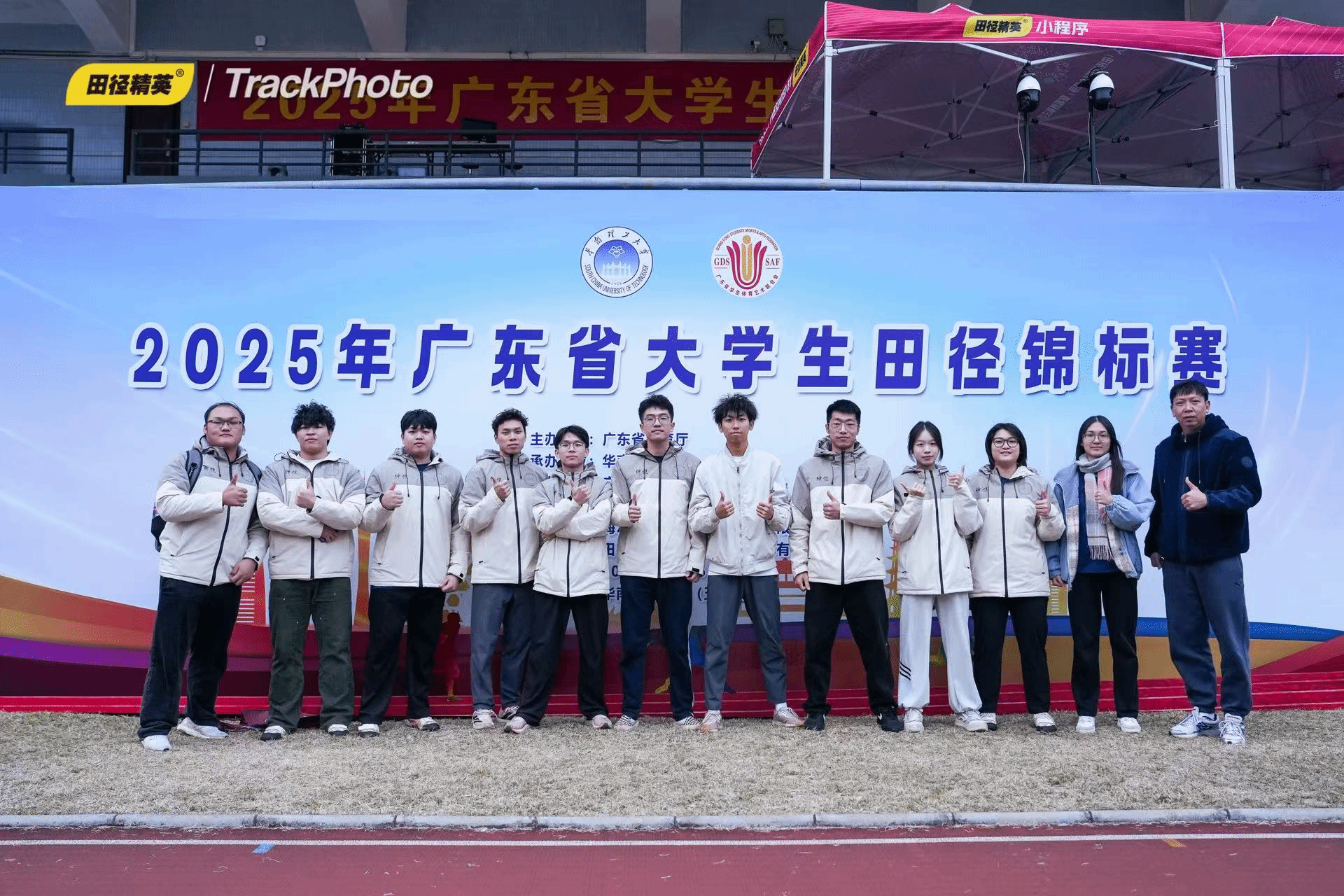 12月26~28日,由广东省教育厅主办,华南理工大学承办的广东省2025年大学生田径锦标赛于在华南理工大学(五山校区)举行,吸引了全省130所高校2334多名运动员及教练员参加比赛。我校田径队10名学生运动员,在领队李尚胥院长、教练员林锋和钟进聪的带领下,参加了本次比赛。