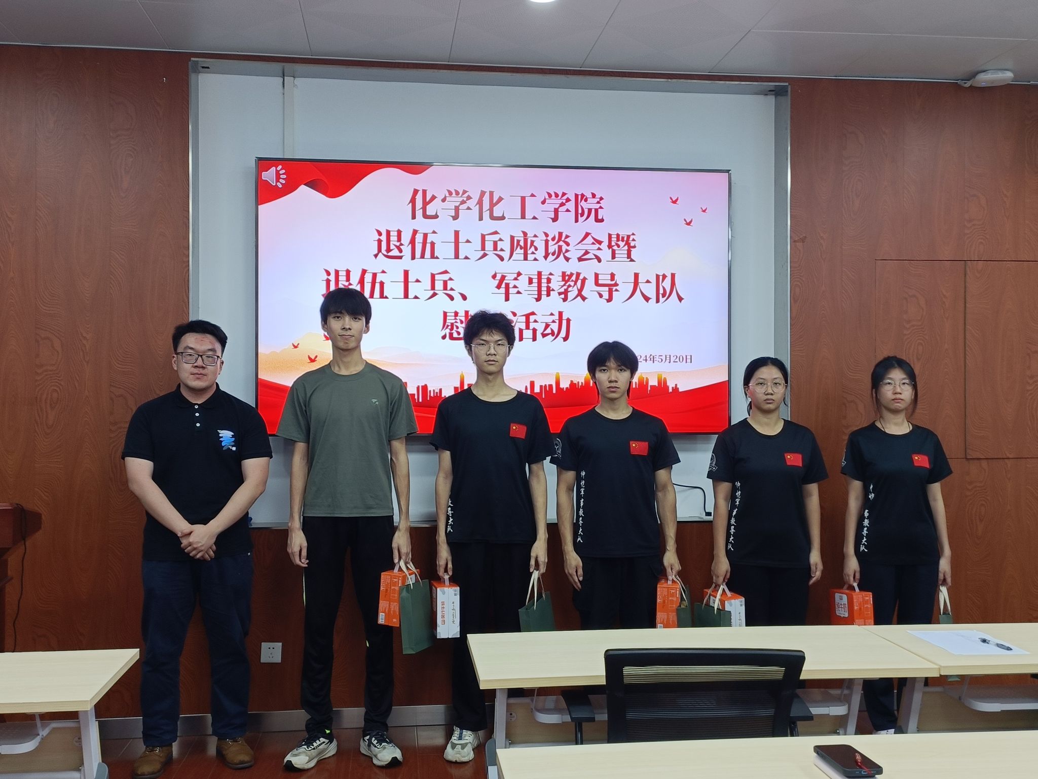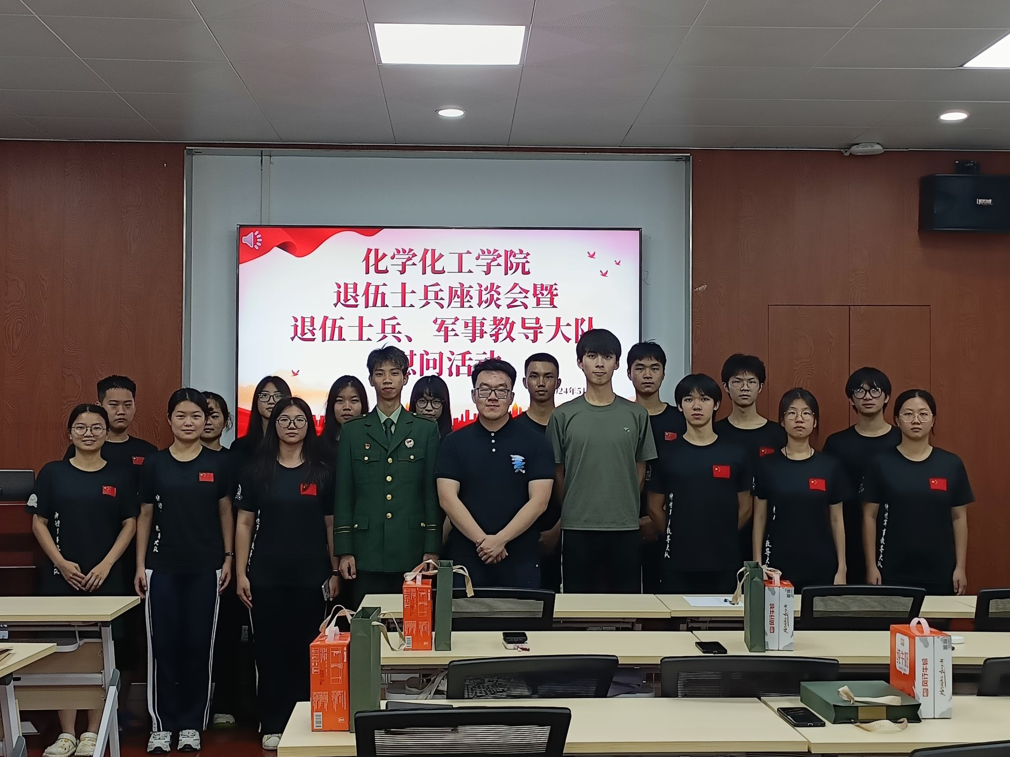 至此,化学化工学院退伍士兵座谈会暨退伍士兵、军事教导大队队员慰问活动圆满结束。
