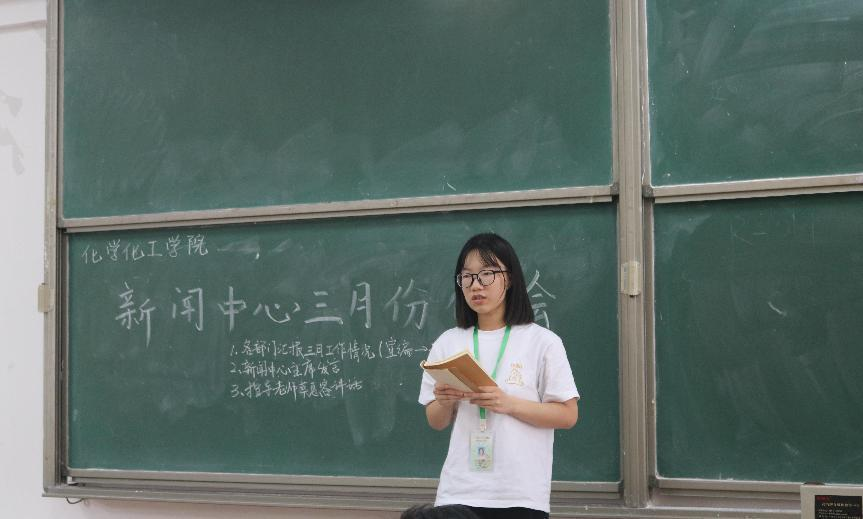 4月8日下午,化学化工学院新闻中心三月例会于白云校区杨钊杨勋楼207课室召开。出席本次会议的有化学化工学院新闻中心指导老师蔡惠容,化学化工学院新闻中心主席团成员林冰玲、蔡嘉茵、黎晋声以及各部门部长和小助理们。