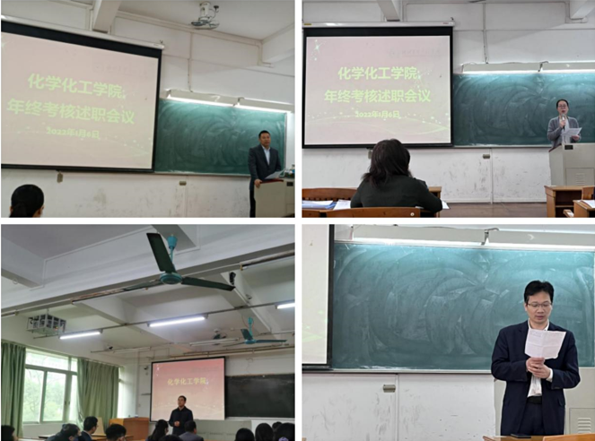 1月6日上午,化学化工学院在白云校区杨楼304课室召开了年终考核述职会议,会议主要包含两方面内容:第一是中层干部年度考核述职测评;第二是2021年年度考核推优教师述职。会议由学院党委书记邱树华主持。