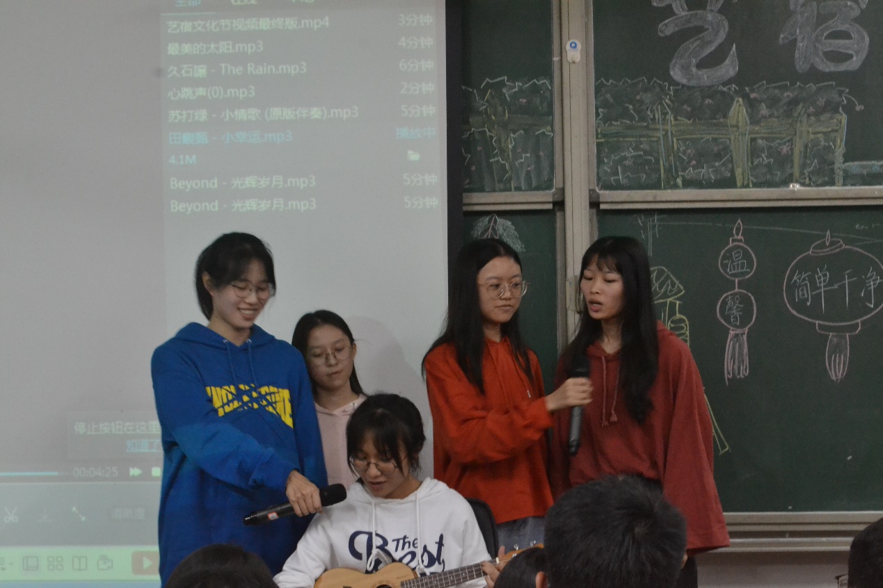 11月24日晚,为营造和谐温馨的宿舍氛围与友好的宿舍关系,化学化工学院第七届艺宿文化节决赛于杨钊杨勋楼307课室隆重举行。出席本次文化节的嘉宾有化学化工学院辅导员刘亚宁、学生会主席关志星、学生会副主席谢思敏、17届生活权益部部长李芷晴、17届生活权益部副部长萧家明以及各兄弟学院生活部代表。化学化工学院1-522、1-316等七个宿舍参加了本次艺宿文化节决赛。