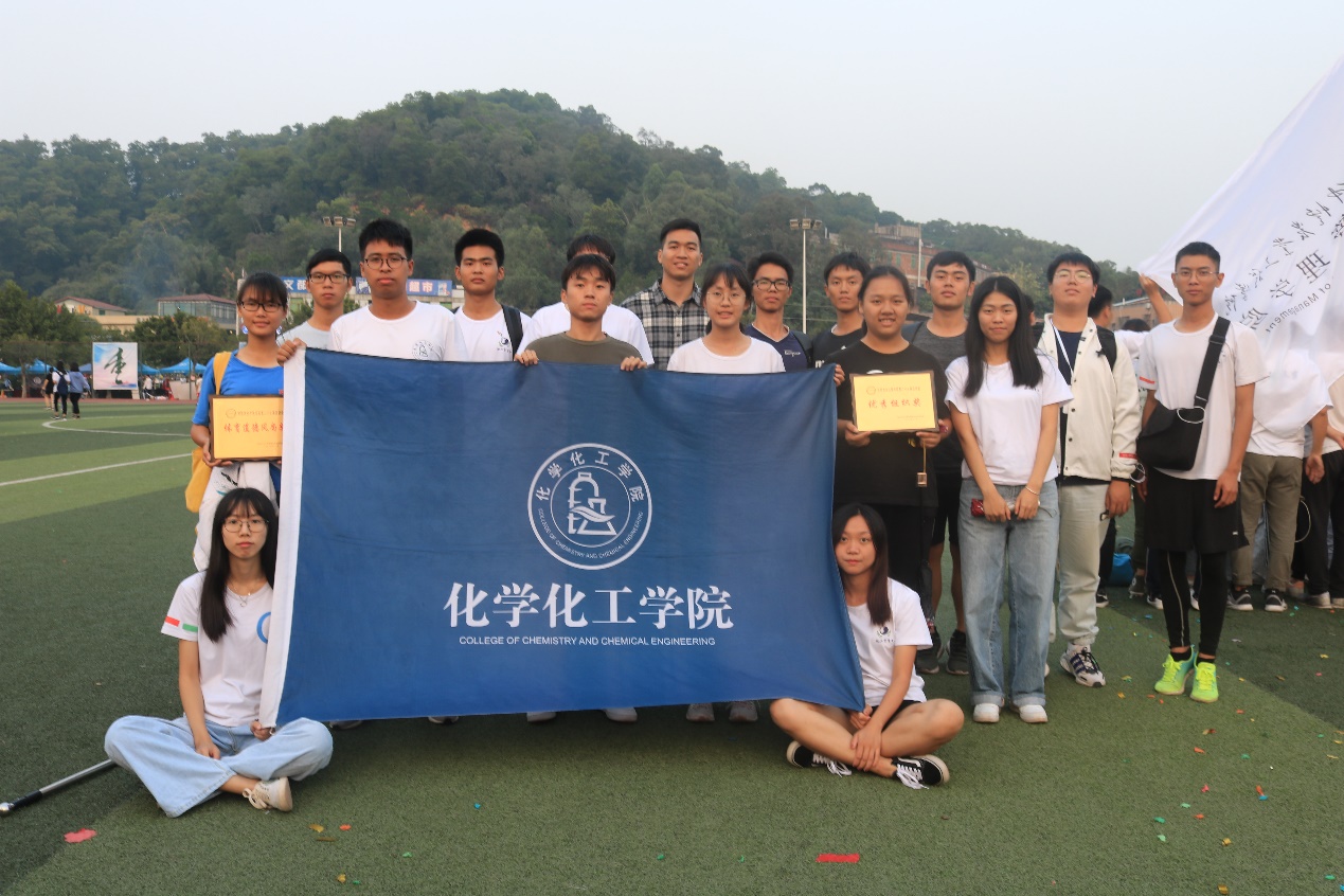 开幕式结束后,各比赛项目的竞赛便陆续进行着。化学化工学院党总支书记邱树华、院长舒绪刚、党总支副书记严丽纯、团委副书记徐冠东、辅导员杨燕、潘耀宗、刘亚宁等各位老师也到校运会现场,为化工学子加油助威。在学生组的比赛中,化学化工学院学生积极参与各项比赛项目,他们用飒爽的英姿、奋力的激情、洒下阳光的汗水为化学化工学院争得了奖项与荣誉。其中,曾秀琪同学获得女子铅球第一名,欧妃四同学获得女子400米第二名、女子三级跳远第四名,蔡桂钰同学获得女子三级跳远第四名,林洽瑾同学获得男子三级跳远第六名,我院男子4*100米接力(林洽瑾 张松青 董浩翔 曾伙生)获得第七名,欧玮莹同学获得女子200米第八名的成绩。此外,在本次第二十七届运动会中,化学化工学院还获得了体育道德风尚奖、优秀组织奖以及第九套广播体操第七名的奖项,彰显了我院学子奋勇向前、努力进取的精神风貌。