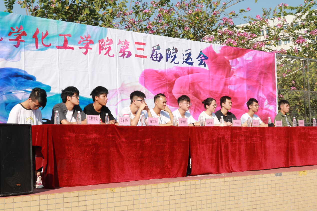 10月20日,为庆祝新中国成立70周年,秉承习近平总书记语录之青年人应德智体美劳全面发展的要求,化学化工学院于白云校区足球场举行了第三届院运会。出席本次院运会的嘉宾有化学化工学院党总支副书记严丽纯、辅导员刘亚宁、徐冠东、主席团、书记团、主任团及各兄弟学院代表。我院2018、2019级学生参加了本次院运会。