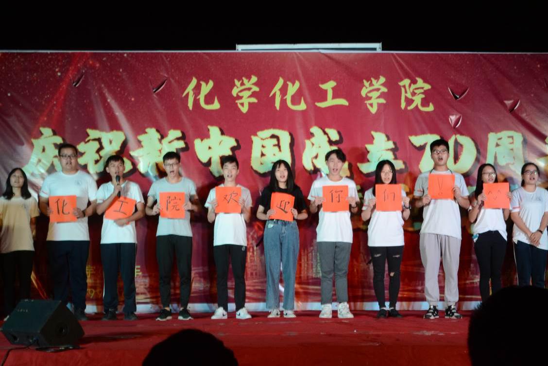 10月19日晚上,为庆祝新中国成立70周年,化学化工学院于白云校区新篮球场隆重举行“庆祝新中国成立70周年”主题迎新晚会。出席本次活动的嘉宾有化学化工学院党总支副书记严丽纯、辅导员潘耀宗、徐冠东、18届新闻中心主任林思淇、18届团委第二副书记温德健、校学生会办公室主任林伊纯、校艺术团代表苏晓威、院主席团、书记团、主任团及各兄弟学院学生代表。我院2019级全体新生参加了本次晚会。