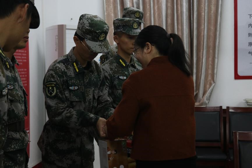 活动的最后,严丽纯书记、刘亚宁老师和梁开华老师为28位学生教官送上牛奶等慰问品以示感谢。