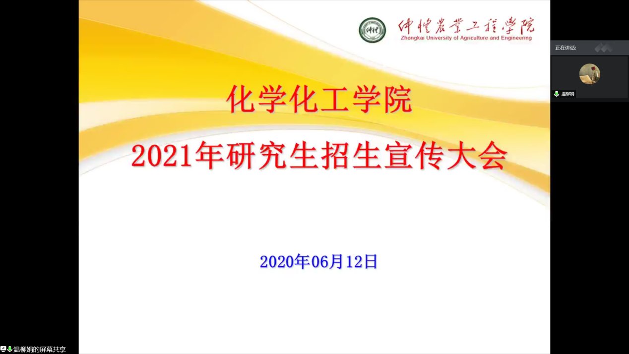 6月12日晚,化学化工学院在腾讯会议召开了2017级考研动员会议。化学化工学院党总支书记邱树华、院长舒绪刚、党总支副书记严丽纯、副院长冯光炷、陈循军、学院导师葛建芳、周红军、程杏安、龚圣、陈铧耀以及我院优秀学生代表(骆岐明、陈子菁和庞小燕)、17级考研学子参加了本次会议。