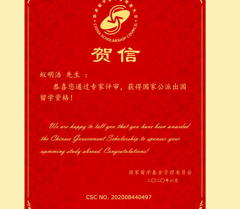 蚁明浩科研上勤奋刻苦,始终对科研工作抱有严谨的态度和持续的热情,在导师的指导下不断攀登科学高峰。目前,已经独立完成并发表了3篇SCI论文,其中JCR1区1篇,2区论文2篇,申请发明专利2项。此外,蚁明浩曾于2018年8月独立赴英国伦敦参加国际学术会议,并在大会上作报告,2020年1-2月赴西班牙高等科学研究理事会聚合物科学与技术研究所进行学术访问和交流。蚁明浩能获得公派出国留学的名额不仅是对学院、学校研究生培养质量的认可,更是开辟了一条通往国际高等学府继续深造的桥梁,为全校研究生树立了榜样,必将激励我校更多研究生刻苦钻研,实现出国深造的梦想!