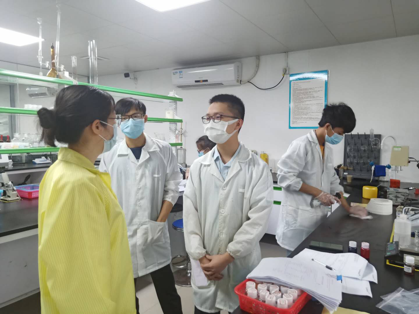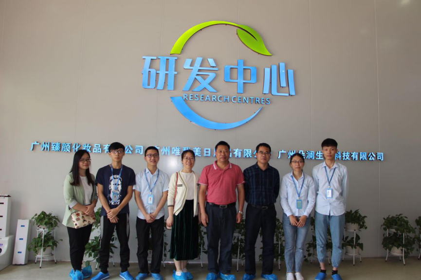 4月28日,化学化工学院党总支书记邱树华、院长舒绪刚、党总支副书记严丽纯、辅导员刘亚宁一行走访了就职于广州臻颜化妆品有限公司的校友。目前,就职于此公司的有2014届学生黄梓涵,2018届学生谢锐洋、袁荣德,2019届学生赖威,他们均从事化妆品研发工作,其中黄梓涵任研发总监助理。
