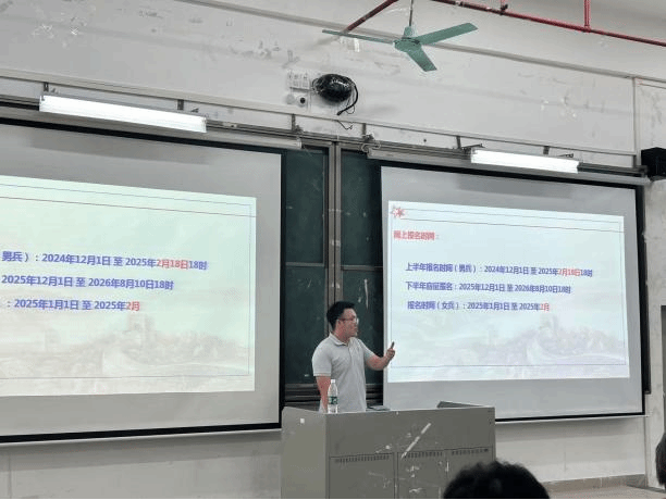 11月4日至5日,化学化工学院在教学楼②D2课室举行了秋季征兵动员会,旨在鼓励广大青年学子积极响应国家号召,投身国防事业,为实现强国梦、强军梦贡献青春力量。