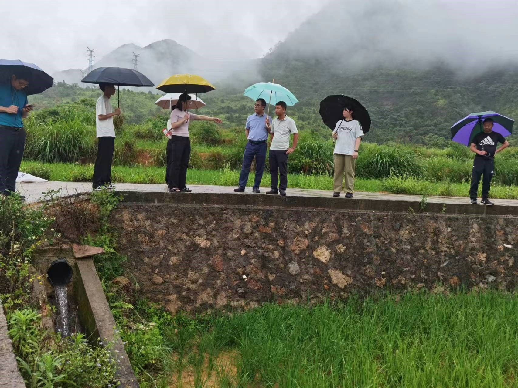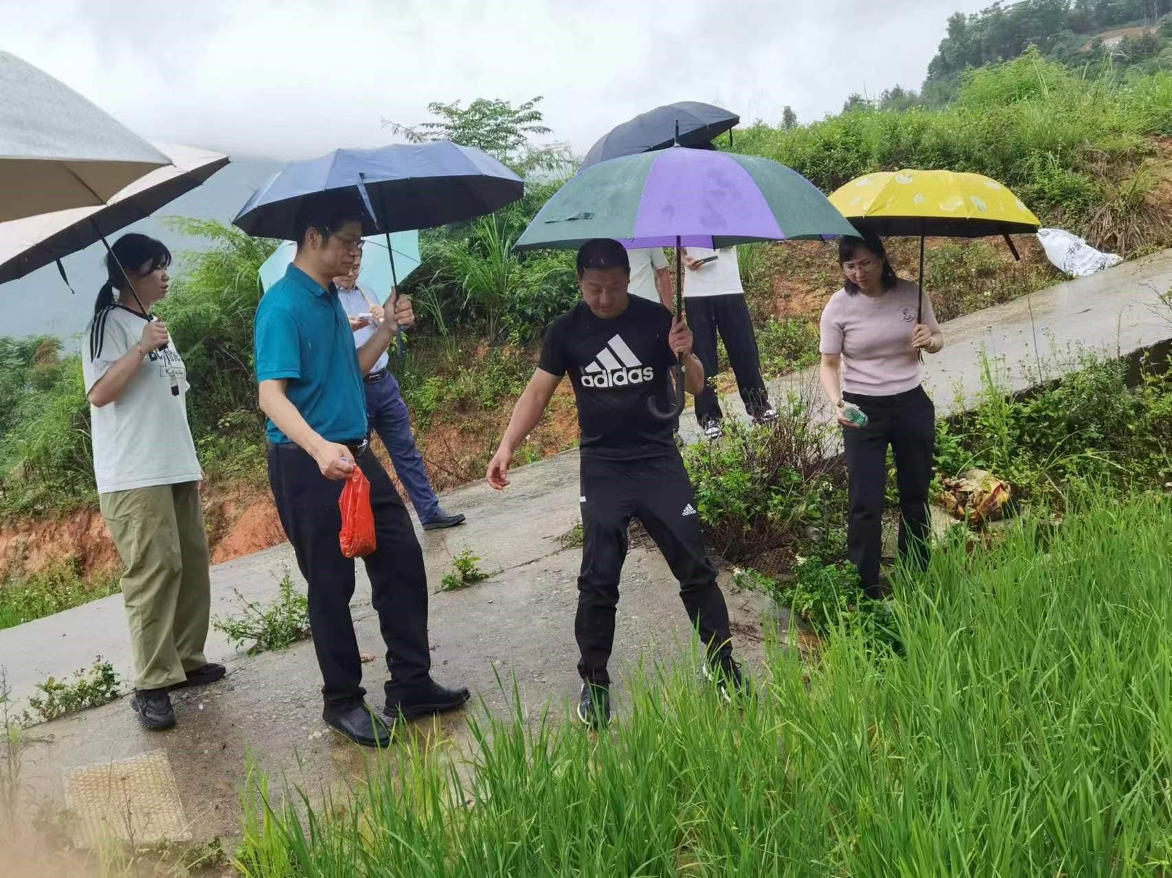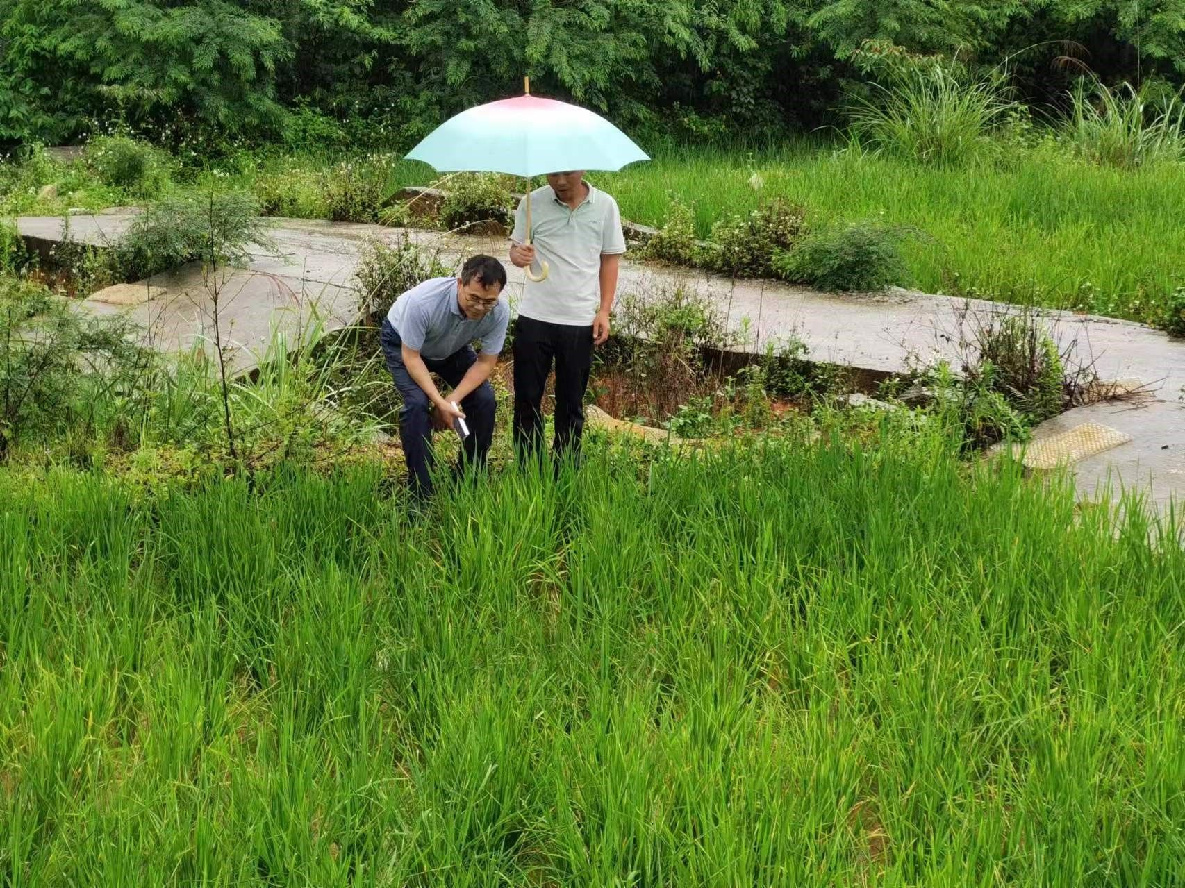 当天下午,化学化工学院帮扶团队、建桥镇农业农村服务中心王于玲主任等、深圳芭田生态工程股份有限公司技术服务工程师王工及丰顺锦和种养专业合作社负责人王岳星一行继续冒雨到环中村调研水田土壤板结的问题并实地取样。板结的土壤样品交由帮扶团队带回广州找专业机构进行分析检测。