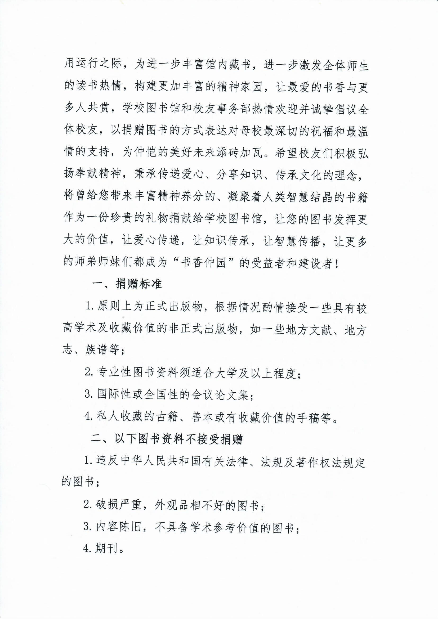 学校图书馆、校友事务部图书捐赠倡议原文如下: